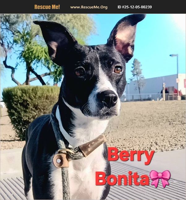 Please help me live! Mcacc Shelter has given me a deadline due to kennel stress. I have done nothing wrong so I hope you come and meet me before my deadline! LOCATED: 1920 S Lewis Dr. Mesa Az Fill out: https://www.thedogsavers.org/apply-to-adopt/ Call: 480-331-4188 I'm BERRY BONITA ��%90%BE #A5154567 1yr old, 28lb female, Black/White Terrier/Chihuahua Mix. 'I'm chipped, vaccinated & spayed! Yay! * I was found at the front door of finder. * I am kid and cat friendly. * I am a very scared, timid and easily startled I would love someone to help me feel safe. * Like affection, pets and being close, once I trust and feel safe. * I enjoy chasing birds in the yard. * Requirement children 5+ * Am good on a leash, am curious so I pull at first. * Learning to walk on a leash and to take treats! * I want to have a chance to be loved-please don't let it end like this!