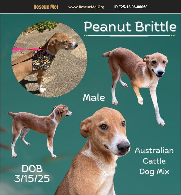 Peanut Brittle is a very affectionate a playful pup! He loves doing zoomies in the play yard with other dogs as well as snuggling up for lovings!