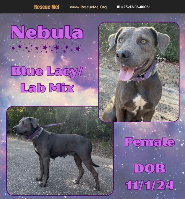 Nebula is an EXTREMELY sweet and demure girl. She is super laid back and chill and just wants lovings. She is very gentle in asking for them, placing her paw on your thigh and then resting her head against you when you start petting. This girl just wants to love and be loved in return.