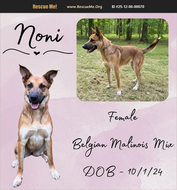 Drive, Beauty, and Unflappable Composure! Meet Noni, a breathtaking Belgian Malinois mix! Noni is an athletic powerhouse with tons of energy and drive, but what sets her apart is her cool and calm presence in stressful situations. She does need someone with the ability to handle her drive and athleticism and focus her with exercise and enrichment. Found with her friend Aloha at a blazing house fire, she proved her resilience. While her home burned, she kept her cool, staying out of the way and showing incredible social manners by approaching first responders for gentle lovings-all while her tail was wagging! This girl is unbelievably beautiful and ready to devote her loyalty and intelligence to a loving, active family. Her demeanor in a crisis shows she is destined to be a steadfast and amazing companion. After remaining unclaimed by her owners afterwards, this sweetheart is now available for adoption. Give this incredible girl the stable, loving home she deserves!