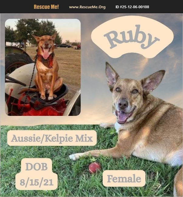 Ruby is a high-energy, fun-loving girl who's always ready for adventure. Whether it's playing fetch, going for a long walk, or tackling a hiking trail, she's happiest when she's on the move. Athletic and spirited, Ruby is the perfect companion for someone who loves to stay active. When the day winds down, Ruby shows off her 'Velcro dog' side-she's incredibly affectionate and will happily snuggle up with you. She's such a funny mix of personalities, we joke she's part cat and part kangaroo! Ruby has had training, though she can still be a little strong-willed at times, so she'll thrive with someone who can continue to provide structure, guidance, and plenty of exercise. Her ideal home would be one where she not only gets the activity she craves but also lots of love and affection. If you're looking for a loyal, athletic, and endlessly loving best friend who will keep you moving and fill your days with joy, Ruby may be your perfect match!