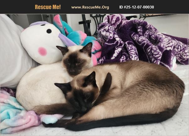 Due to my health concerns, I need to find a home for my cats. They are purebred Siamese and are brother and sister from the same litter. They are very affectionate and love lots of attention. I really would love to find a good home for both of them together as they have been together since birth.