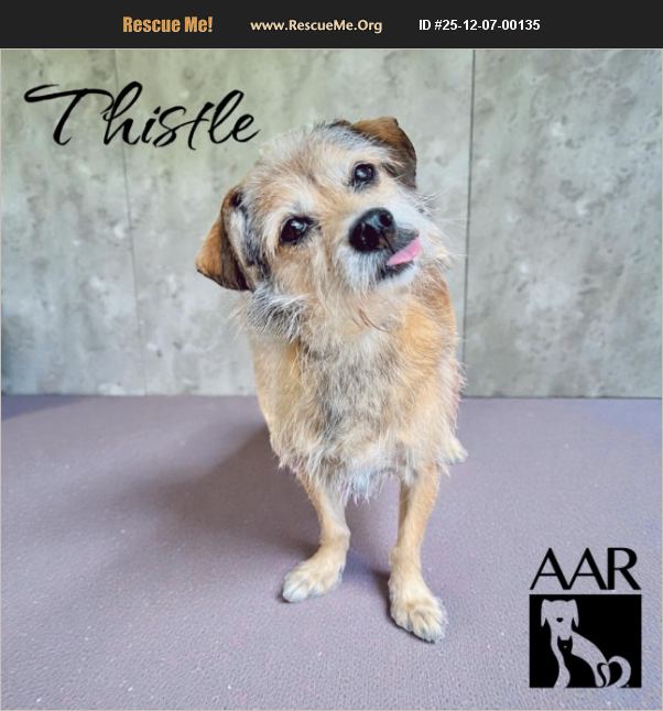 Thistle is a sweet, gentle boy who has blossomed during his time at AAR. With every walk and every kind word from the volunteers, he has learned to trust people more and more. His soft eyes and calm presence make it clear-he wants nothing more than to feel safe and loved. Thistle's early life was unstable. He and his companion dog, Juniper, lived at a home where different families came and went, leaving them without consistent care or affection. Thankfully, a kind neighbor stepped in and brought them both to AAR so they could finally have the chance at a better life. Juniper will be staying at AAR a little longer to receive some healthcare she needs, but Thistle is ready now. He's ready for a family who will show him what it means to truly belong. He would love a quiet, patient home where he can continue building confidence, enjoy his daily walks, and soak up all the affection he has been waiting for. Thistle has a tender heart and a hopeful spirit-he just needs someone to give him the stable, loving home he deserves. Could that be you? Est. DOB: 9/16/23 11 lbs. AAR does not transport for adoption.
