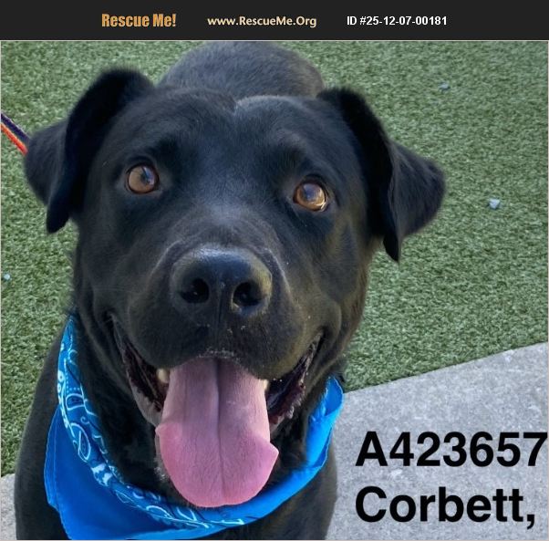 Adoption specials through Dec. 25. Transport help may be available. * 3 year old Labrador mix * weighs 58 pounds * was found abandoned * not yet neutered but he will be * greets at his door with tail wags * easy to leash and walk * appears to be housebroken * calm in and out of the kennel * friendly, happy, social, and loving * curious explorer - enjoyed sniffing and checking the outdoor toys out * took treats gently but didn't eat them * welcomes all pets and attention Corbett is a good boy, he seems to have pretty good manners and is eager to please. This sweet boy hangs out at the front of his kennel. He's hoping that he can charm his way into your life and convince you take him on home! Life hasn't been easy lately and he is feeling pretty sad, lonely, and unloved. He hopes you will give him a chance to be your next best friend. The shelter is full, please come adopt Corbett!