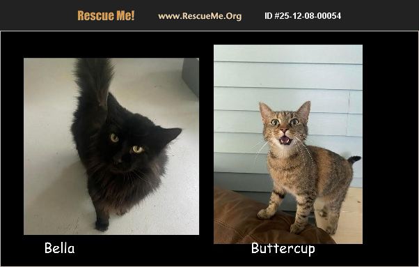 BELLA AND BUTTERMILK need to be adopted together as Buttermilk is very shy and dependent on Bella. Both are adult cats about 6 and 7 years old. Bella is a black long haired beauty and Buttermilk a Brown and cream tabby. They are current on vaccinations, litter trained, microchipped and altered. These babies were displaced as their foster had to give them up through no one's fault but are now in boarding with a vet as we have NO Room. These Babies really NEED a forever home.
