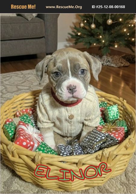 This gorgeous little girl is Elinor! She is a Staffordshire Terrier and Pit Bull mix that was born October 15th, 2025 and is currently 4.5 lbs. She is a curious and vivacious puppy whose playful behavior promises endless entertainment. Elinor delights in exploring her surroundings, frolicking after leaves, and snuggling during nap times. This pup is certain to delight everyone she encounters. Could Elinor be the pup of your dreams? This mix combines the strength and loyalty of the American Staffordshire Terrier with the tenacity and intelligence of the Pitbull, resulting in a versatile and loving companion for families. Elinor will be provided with all three sets of puppy vaccinations, dewormed and micro-chipped. $95 rescue adoption fee applies as well as a spay contract. For adoption application and more pics please inquire here or call or text Lori at: 760-680-3713. Located in Grove, Ok.