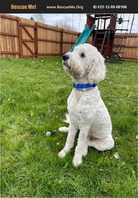 Fang is a big softy and was named after Hagrids dog from Harry Potter. He has a sad past life and we have tried desperately to be a good home for him. Unfortunately he was owned by a homeless family for his first year of life and was abused and neglected. He is a purebred Labradoodle who they stole from a breeder. His first family only spoke Spanish but we taught him English. He knows many commands and always responds to them except for STOP when he hits that hunt mode. He cannot handle being contained in a kennel or locked alone in a cage. He barely knows manners with leash walking and needs to be held by a strong person who is prepared for him to bolt. He is very strong and if he sees a squirrel he will tear after it. He is a very loving and dedicated dog. Amazing protector who is always on watch to protect his family. He has a strong ability to bond to many people including children. He is a lazy dog who wants to be asleep on the floor near his people. He also loves to cuddle up and watch movies. The biggest issues with him is his food drive. He will steal food, eat trash, or tear up anything that has a food smell. This means an owner needs to take extreme care when he is inside to keep food put away. He will not beg or be aggressive when the family is eating. He will happily lay on the floor, dozing while we eat. As soon as my son says 'I'm full' he will pop up and look at his plate to see whats left for him. He doesn't go for it, he patiently waits for it to be put in his bowl. The food issues always come when he is alone, sneaking extras. We have also found that he LOVES birds in the worst way. He will hunt and kill any bird he can. He has killed 4 of our chickens over the years and will eat song birds who land in our yard. Bonus he also hunts and kills mice and rats. I'm honestly not sure what kind of home Fang needs. He loves to run and run in a contained fence and to be lazy napping around the house. However, his anxiety and stress around going hungry make it difficult for families with food around or open access to a trash can. I am not interested in an adoption fee but don't want to pay for travel expenses for an out of the area adoption. He would probably make a good hunting dog but would need a training on retrieving without eating it himself.