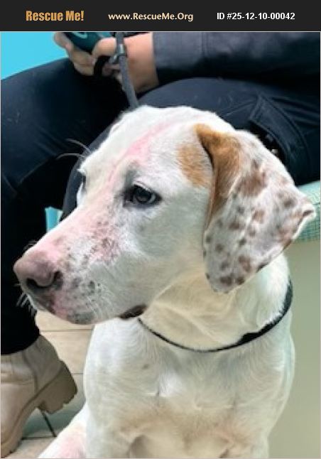 This sweetheart is in a kill shelter. I will have him fostering with me in Norwalk CT this weekend. He is adorable under 8 months pointer/lab mix doggie, people and cat friendly. Lovely little boy. I can send video if you contact me.
