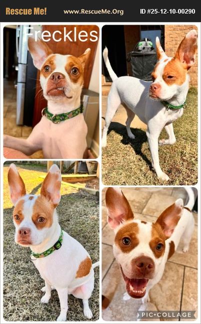 �Ϭ��%90%BE Meet Freckles - The Boston Terrier Who Thinks He's a Parrot ��%90%BE�Ϭ Age: ~2 years | Weight: 26 lbs Freckles is a professional Velcro Dog�� who prefers to spend his day in your lap, on your shoulders, or glued to your hip like a clingy toddler with fur. Personal space? He simply says no thank you. ���� His Skills Crates like a pro Awesome car rider Leash skills: 'We're learning, okay?' Non-destructive�'�| unless you count his sock & slipper crime spree ���%A0��%8F His 'Needs Improvement' Section Housebreaking: Getting better but needs someone to actually go outside with him so he does his business and not just wander around. Chill Mode: Still paces inside like a tiny Boston security guard, but he's improving. Play Manners: Fun guy, but gets growly and intense. Correctable - just needs someone not intimidated by a 26-lb gremlin making gremlin noises. ��ե His Perfect Human Freckles attaches HARD. He needs someone who: Is home a lot Loves snuggles Is confident with dogs who play loud Will continue teaching him manners Doesn't mind a dog with Big Feelings and Bigger Ears He likes other dogs but needs thoughtful intros - he didn't hit it off with his foster's male dog at first, but warms up with structure. ���%8D Cute Features Giant satellite-dish ears with adorable freckles Will absolutely climb your body like a tree to nap on your shoulders Treats? YES. Snuggles? DOUBLE YES. Being left alone? HARD NO. If you want a hilariously clingy, big-eared best friend who will worship you like a deity�'�| Freckles is your guy. ���� Apply to adopt: https://www.shelterluv.com/matchme/adopt/WAG/Dog ��%90%BE Adoption Info: All of our animals are fully vetted, which includes spay/neuter, up to date on vaccines, wormed, heartworm tested and treated if necessary, up to date on flea/tick/heartworm prevention, and microchipped prior to adoption. The dog you're applying for might already have a meet-and-greet scheduled, be on trial with another family, or offered to another rescue - but don't worry, we'll help you find the right match!