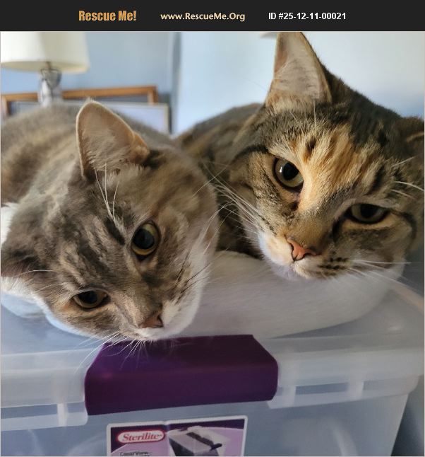 These girls are mom and daughter. They must stay together. Sugar loves attention and her belly rubbed. Callie is a sweet momma and loves to lay and nap. Both kitties have been front declawed and have only been indoors cats. Please contact by text.