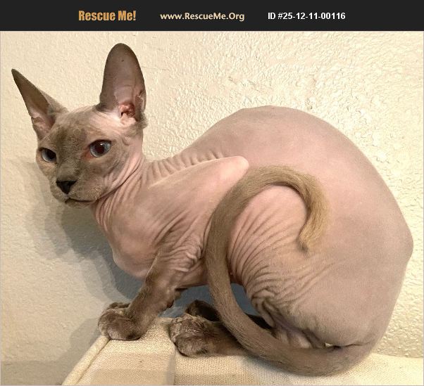 Originally, Daisy was purchased from a sphynx breeder at ~8 weeks old during January 2021. She's been one of the most playful and affectionate cats I have owned in my lifetime, and is a massive, heat-seeking cuddle bug. She's of a mild temper but is stressed by car rides and is prone to accidents. Over the course of our three years of ownership her stool went from solid to liquid, and we believe she has IBS, as some sphynx are prone to being. By the summer of 2024 we had to re-home her, but now she's back in our possession in the same condition. When I acquire records from the owner I will update vaccine/spay status. We've tried many temporary treatments but cannot afford to take greater stool analysis. We would love for her to find a forever home that can accommodate her condition, as she's a perfect companion otherwise. She was originally homed with our other male sphynx and my younger siblings, so she should be amicable with most other cats and children. Her silver, fluffy paws and blue eyes make for an elegant look on a silly young lady. She likes to sit by your bedroom door in the morning with a toy, waiting to start the day side by side with you. Once she has your trust, she'll head butt and cuddle your heart away!