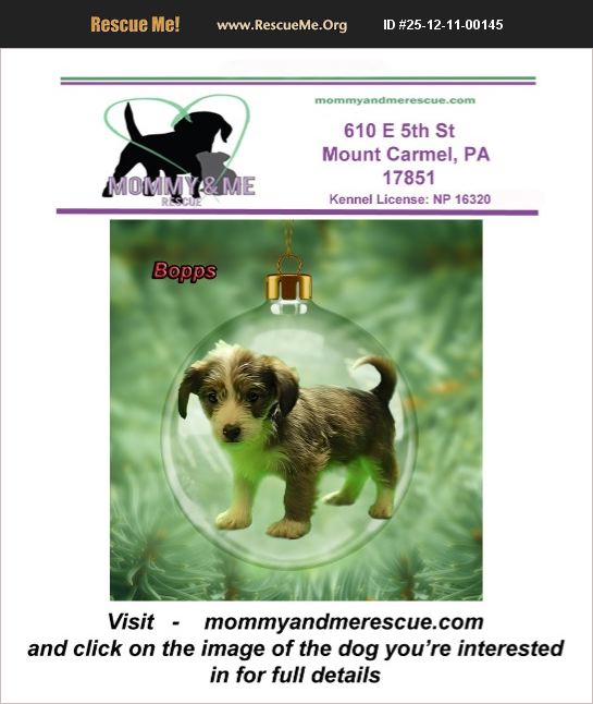 Go to: www.MommyAndMeRescue.com ALL adopters are required to meet at our center in Mt Carmel, PA (NO exceptions)