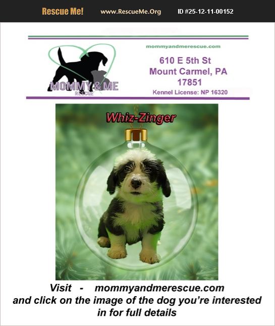 Go to: www.MommyAndMeRescue.com ALL adopters are required to meet at our center in Mt Carmel, PA (NO exceptions)
