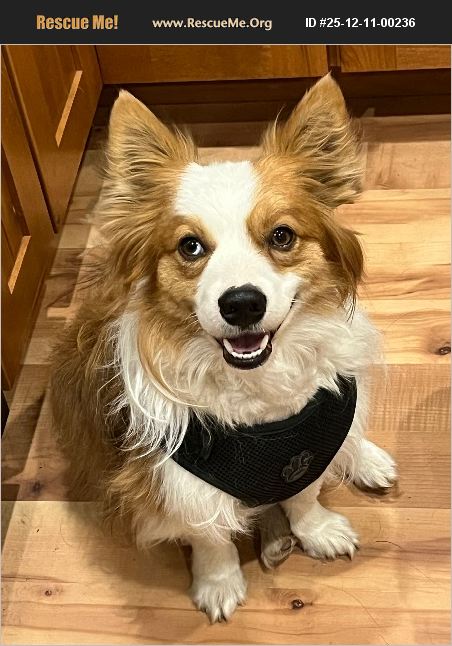What has the face of a Corgi, the tail and bounce of a Papillion, and the coat and shape of a Cavalier King Charles Spaniel? It's Perry, the elusive King Corgpapalier. Perry is a sweet gentle soul who wants nothing more than the love and company of his human. He came into a KS shelter as an owner surrender due to a move. His coat was full of mats so he got a budget haircut (shaved heinie) at the shelter but when it grows in, he'll require regular professional grooming. He's a little hand shy so will do best in a quieter home with at least one female caregiver. Perry loves going for rides and walks, is potty trained, and can leap a gate/fence so he can never be left outside when his humans leave. He tolerates the crate for short periods (gets barky when his crate patience expires) and likes to sleep near his human preferably on the big bed. He's approx 2.5 y/o, 20# (could stand to lose a couple pounds), and dog friendly (calmer dogs would be a better fit), although he hasn't really engaged in play with other dogs, he prefers humans. He has not been tested with cats or kids and due to his shy yet bouncy and slightly mouthy nature, respectful kids 10+ may be considered. Perry will do best with active humans who work from home or are retired. He will be your ride or die shadow and requires a good lap during down time. If you are interested in meeting Perry, the first step is to complete our meet and greet application at https://www.corgisandfriends.com/forms We require the application, home and reference check, and meet with everyone in the home. Perry is neutered, utd on vaccs, chipped, and HW-. Perry's adoption fee is $425 and we do not adopt outside of Colorado.