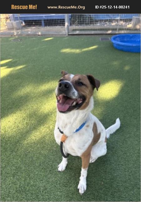 Update: He is now going to be killed on 12/21!!! TURKEY, A2148156, he was surrendered by his owner and this is what their note said: 'he only tries to bite when we hit him'!!! So now the shelter has put him on the urgent list!!! Dogs on this list will then be added to the euthanasia list if not adopted!!! He needs a hero! Turkey is a sweet loving boy and he did well in playgroup with other dogs. NEUTERED MALE, WHITE AND BROWN Cattle Dog. Shelter: EAST VALLEY Age: 3 YRS Weight: 48 LBS. This animal has been at the shelter since 12/03/2025. Transportation information is available contact Bonnie below