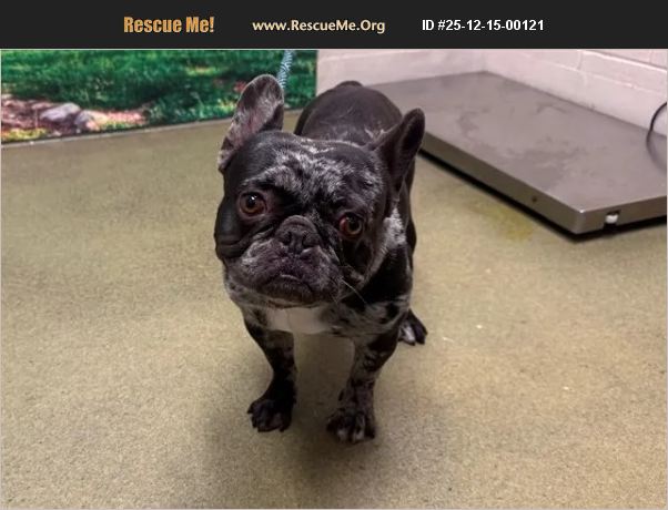 ID#A547921 I am described as a female, blue merle French Bulldog mix. The shelter thinks I am about 1 year. I weigh approximately 23.60 lbs. I have been at the shelter since Dec 13, 2025 and I may be available for adoption on Dec 20, 2025 at 2:35PM.
