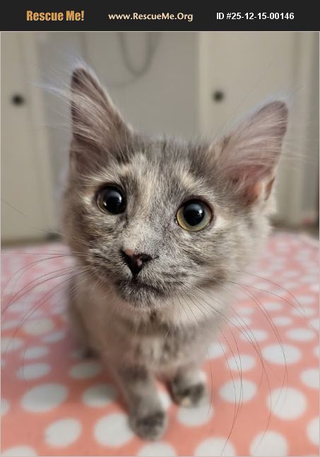 Meet Silver Bell - a captivating, fluffy, dilute torti kitten who has the most loving personality to match her adorable looks! Silver Bell loves to play hard AND cuddle harder with her siblings and humans but is also a lap kitten to her core - As soon as she sees you she will rush to you with all of the purrs seeking affection. Silver Bell gets along great with her sibling kittens and all other cats and would be happy to be adopted with her snuggle and playmate brother Snowcap or their adopted sister Sunflower. Silver Bell has met a number of children and other kitties and takes to them just as quickly as she does adults and her feline friends. Silver Bell is 100% litter box trained, spayed, and has undergone comprehensive health treatments, including vaccinations and disease testing. All she needs is a place and her people to call home. Don't miss your opportunity to meet this beauty with the personality to match. To meet Silver Bell and other adoptable Purr Partners kitties at one of our weekend adoptathon events, 1) review our adoption policies at https://www.purrpartners.org/adopt/policies/ and 2) then apply to become a pre-approved adopter at https://www.purrpartners.org/adopt/cats/