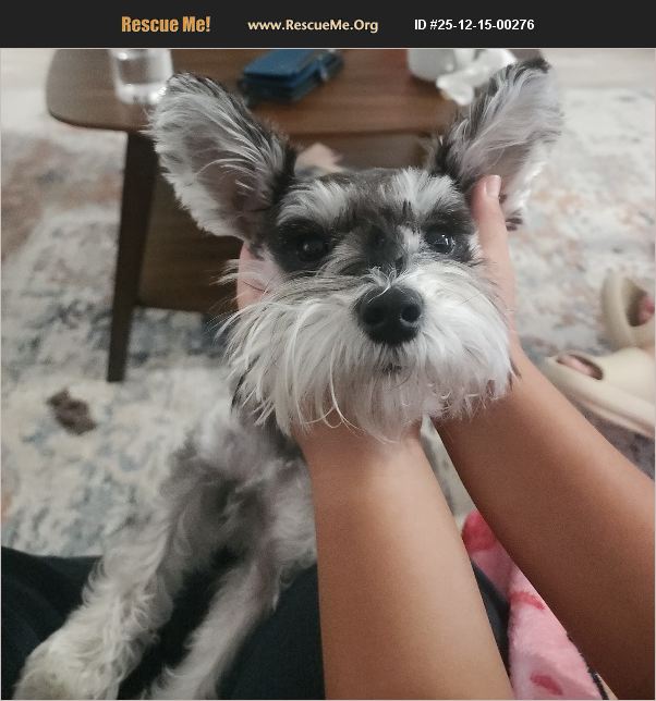 Miniature Schnauzer looking for a new home. Ideal candidate would work from home. She is 15 months old and is up to date with vaccines. We started training using a prong collar and she knows a few commands such as 'place' and 'bed'. She sometimes complies with 'stay', 'come' and 'sit'. We love her very much but unfortunately can't keep her so we want to find her a loving person or family that can take care of her.