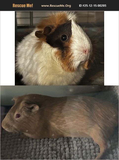 Looking to rehome pair of guinea pigs. Willow (top) was adopted 03/13/2024 and Hazel (bottom) was adopted 11/12/2023. They are a bonded pair and would both be adopted together. Willow is more shy and Hazel is more energetic and vocal. They love veggies, treats, and doing tricks for them (standing up). They currently live in a 2x4 C&C cage that would go with them as well. No behavioral problems, just too many pets in the home. Hoping to find a loving home.