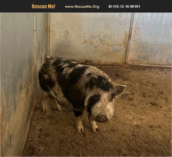 Located At: Riverside County Animal Control - Riverside Shelter Description: I am a gray and black Pig. Age: My age is unknown. More Info: I have been at the shelter since Dec 01, 2025.
