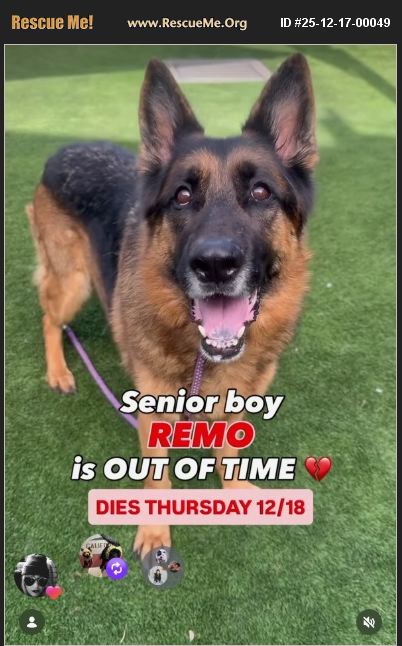 https://www.instagram.com/reel/DSVWgVvErcs/?igsh=Mzc3ZTVlOWMwZA== Pure perfection is 8 yr old Remo. This senior boy arrived at the shelter as a stray in September. He was microchipped but no one came for him. He is the loveliest gent. He adores his cuddles often sinking into your arms and rolling over for belly rubs. He'll happily thank you with kisses. He is a genius, knows all of his basic commands and then some including roll over! He enjoys fetch and has perfect manners, dropping the ball at your feet for each throw. And he is the perfect model for any holiday photoshoot! Remo has also been in playgroup multiple times and is described as both tolerant and selective. He'll bark in dogs' faces to get them to play which can rub some dogs the wrong way. Now this very good boy is facing death 'for space' (even though the population is the lowest it's been in months and we have lots of open kennels). He must exit by THURSDAY 12/18 at 8AM. He is available for foster, adoption, or rescue. Please help Remo get into a home for the holidays! He is waiting at South LA Shelter.