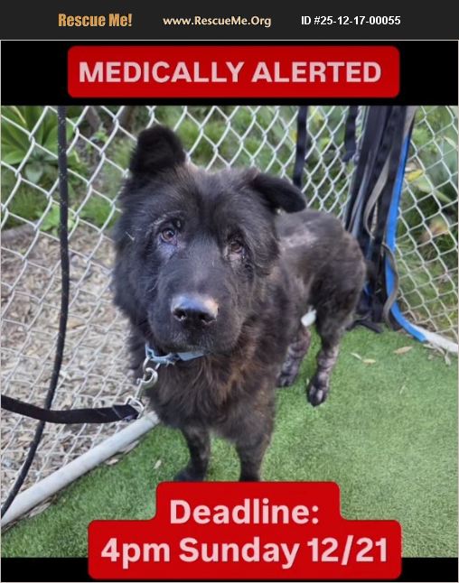 https://www.instagram.com/reel/DSVT3lWgcNj/?igsh=Mzc3ZTVlOWMwZA== Leona #A2242847 is medically alerted and urgent. She must be adopted or rescued from the South Los Angeles Shelter by 4 PM Sunday 12/21/25. Leona is a spayed female about 5 yrs old and weighs 56lbs. She arrived at the shelter on 11/5/25 as a Possible Owner (she had a chip), but was never redeemed. Though Leona has been sick and confined to an inside kennel for most of her shelter stay, she has been out to playgroup twice. She has a gentle and dainty play style , was tolerant and appropriate with other dogs, affiliative, with people, gave appropriate corrections, and is described as having a softer temperament. As you can see in the videos, she's quite loving and sweet. MEDICAL ALERT: Chronic skin infection, URI not responding to treatment in the shelter. Has been on meds for 4 weeks MUST BE PULLED BY SUNDAY 12/21/25 BY 4 PM Please reach out if you'd like a copy of her medical record. ���%8DSouth LA Animal Shelter