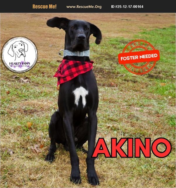 Location: Fort Worth, TX DOB: 10/26/23 We're looking for a FOSTER for this boy. A FOSTER TO ADOPT would be great! Take a look at the wee little lad of a Dane (86 lbs). He's the perfect companion and a sweet boy. Akino has a past history of neglect. He needs a foster, preferably a foster to adopt. Currently, with his temporary foster family, the resident dogs are not fond of him so he needs to be in a safe, stable environment. The perfect home for Akino: Calm household Safe space A loving environment Room to run and play Akino is: Good with most dogs. Good with people, not sure about children (has not been exposed). Working on house training and basic commands. Cat selective. Akino needs a foster ASAP and it would be great if it were a Foster to Adopt. Hearty Paws pays for all medical care (vaccinations, neuter, etc.). Let's help Akino find his safe space for Christmas! If interested, please apply today to meet Akino. https://forms.gle/G2dJx2NV4JXZcZ9F6