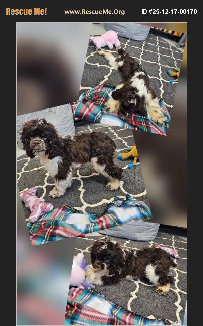 Ivy is a chocolate and white cocker spaniel puppy. We received a call from her breeder saying she had a small cherry eye and they did not want to spend the money to have it fixed. They asked if we would take her in. Tomorrow 12/18/25 she will be seen by our vet to see if they recommend fixing it now or waiting until she is put under to be spayed at 6 month and having it done at the same time as her spay. Ivy has a bith date of 7/25/25. She is a beautiful little girl and is happy and playful. If you are interested in her adoption please text or email us to request an application.