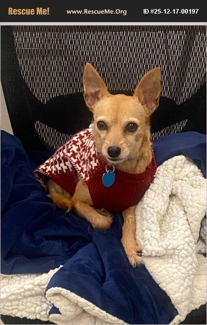 Nova is an adorable 10-year old Chihuahua that weighs 7 lbs. Her original owner had to move out of state and could no longer care for her, nor had any family members to help. She reached out to us as she did not want her to go to the Shelter, so we were happy to take Nova into our group and care for her. Nova is very sweet, great with kids and adults and OK with other dogs. She is very playful and likes to cuddle. She is up to date on vaccines, spayed and microchipped. She is in very good health, only has seasonal allergies and specific food for her tummy. Nova would be a wonderful companion, if you are interested in her please go to our website: www.amrdog.org and complete the application. LOCAL AREA ADOPTION ONLY