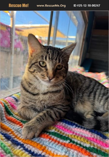 Hi I'm Sporty! I'm a happy timid kitten at six months old as of Dec 2025. I don't come to you yet for petting but I'm close. I'm a tabby boy who is destined to be a lap cat but for now I'll just watch my littermates getting g all the lovins. If you have patience, I'm ready for my new home! Love, Sporty