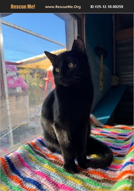 Hi I'm Simon! I'm a friendly happy kitten at six months old as of Dec 2025. I come to you for petting and love love. I'm a black boy who is destined to be a lap cat. I'm ready for my new home! Love Simon