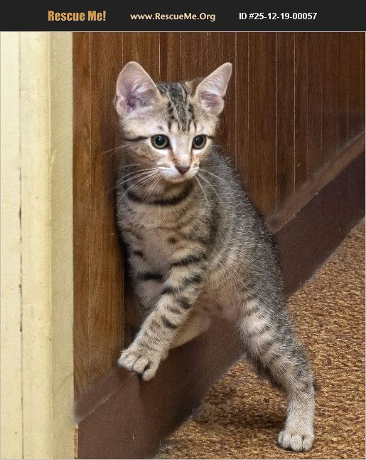 Reggie's light brown, tabby stripes and spots remind us somewhat of a beautiful wild kitty. At play times, this active boy embodies that wild spirit as he runs and wrestles with his litter mates. Laser light and rod toy beware. Nothing misses his attention. And when his energy is exhausted, Reggie is ready to climb on his person's lap for snuggles and a nap. This sweet boy is both energetically playful and charming. Reggie would do well with respectful, older children as a playmate. He has not been introduced to a dog, but with a gradual introduction, he would probably accept a cat-friendly dog. At his young age, Reggie will need to be adopted along with another kitten unless there is a cat under 5 years old in the home already. Fortunately, he has lots of siblings ready to join the fun. Read the adoption policies and submit your application to adopt. You won't regret bringing this sweet boy into your home and family.