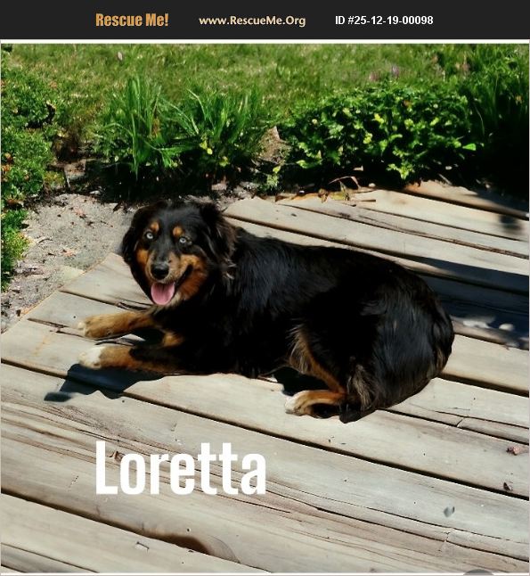 Loretta is a black tri Australian Shepherd. She had a rough early life with some kids who weren't very nice to her and now she is very leary of kids and she is very shy to begin with. She is a very sweet girl once she is accustomed to you. She is low energy, loves to be petted and does not care for the water. She is ok with most dogs, but would do better as the only one or with just one other.