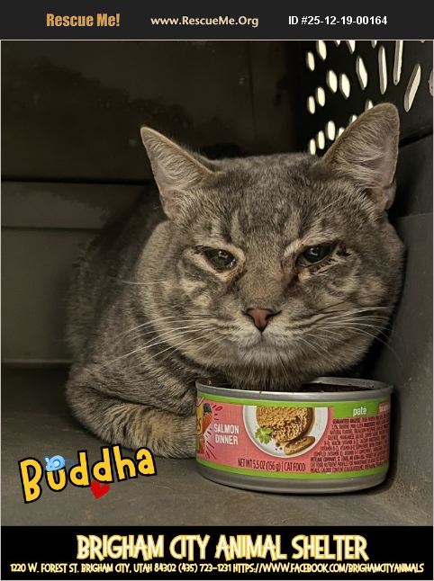 Hello, I'm Buddha. I'm a 2-year-old male Grey Tabby Domestic Short Hair, and I came to the shelter after my family went through a divorce. It wasn't anyone's fault - life just changed, and now I'm hoping for a new beginning with someone who will love me forever. I've been an indoor/outdoor cat before, but I much prefer the comfort of being indoors where it's warm, safe, and where I can be close to my humans. I'm a sweet boy who enjoys calm company and a cozy home. I do want to be honest with you: I have marked in the past, but the shelter humans say that getting neutered should take care of that for me. I'm not neutered yet, but my adoption fee of $140 includes a neuter voucher, so I'll be all set for a healthier, happier future - and likely much cleaner habits. If you're looking for a gentle, loyal companion who just wants a stable home again, I'd love the chance to be part of your family. Adoption Information All adoptions are upon approval of the adoption application only Shelter Hours: Tues-Fri 12-6pm Brigham City Animal Shelter 1220 W Forest St, Brigham City, UT 84302 (435) 723-1231 Brigham City Animal Shelter Facebook Page: https://www.facebook.com/brighamcityanimals
