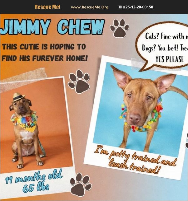This awesome boy is ready to be your best friend. He loves everyone@@ He is people and dog friendly Crate trained, walks on a leash and housebroken. He is very social. He is very playful and very smart A fenced yard would be great for him. He is fully vetted and heartworm negative. Jim would be the perfect family companion. Don't miss out on this great dog. Application at poorpawsrescue.com Jim is about a year old and 66 pounds.