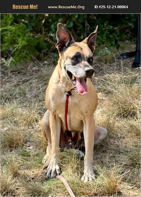 LOCATION: Boerne, TX DOB: 06/06/2018 Chloe Sunshine is a Great Dane mix whose journey into rescue began under incredibly hard circumstances. She came to us about six months ago after surviving on her own in a remote area of Texas, where she had to be humanely trapped so she could finally get the help she needed. At some point earlier in her life, Chloe survived distemper, which left her with a facial and mouth tic that doesn't bother her at all. Her front teeth were severely worn, likely from trying to chew her way out of confinement, and she arrived malnourished, exhausted, and pregnant. Tragically, the puppies had passed before rescue, and Chloe required emergency surgery to save her life. Along with her spay, several damaged teeth were removed, and she began her long road to recovery with proper medical care, food, and rest. When Chloe first arrived in foster care, she was completely shut down and terrified of people. Her foster family gave her her own quiet room with soft beds, plenty of food and water, and even a TV to help her feel less alone. For the first few days, she stayed curled in the corner, freezing whenever someone entered, unsure of what might happen next. Her foster family allowed her all the time she needed, moving at her pace and asking nothing of her except to feel safe. Slowly, Chloe began to take brave steps forward. First she ventured outside on her own. Then she met the other dogs in the home, which turned out to be a huge breakthrough for her. Watching them helped her understand that she was safe, and before long she started leaving her room, joining the household, and learning how to be a dog again. Today, Chloe Sunshine is almost unrecognizable from the scared girl who first arrived. She plays with the other dogs, relaxes on the couch, seeks out snuggles, and happily enjoys her meals. She's learning to walk on a leash and greets her foster mom with the sweetest little happy dance that perfectly fits her name. Over the holidays, she even stayed in a different home while her foster family was away. Though nervous at first, she quickly settled in, climbed onto the couch for pets, and by the end of the stay was happily dancing for her sitter too. Chloe has shown that she can adjust to new environments and continue to build trust, and she's ready for a forever home of her own. She will do best with patient, gentle people who understand that her confidence was hard-won and deserves to be protected. Chloe Sunshine has endured more than most dogs ever should, and now she's ready for a future filled with comfort, kindness, and the steady love she's waited so long to find. ========================= To apply to adopt me, please fill out the application form! https://form.jotform.com/51994996709176 . Note: SRGDRR adopts nationwide and offers transport options to help you find your perfect match! Check out our other adoptable dogs at saverockythegreatdane.org/adopt.