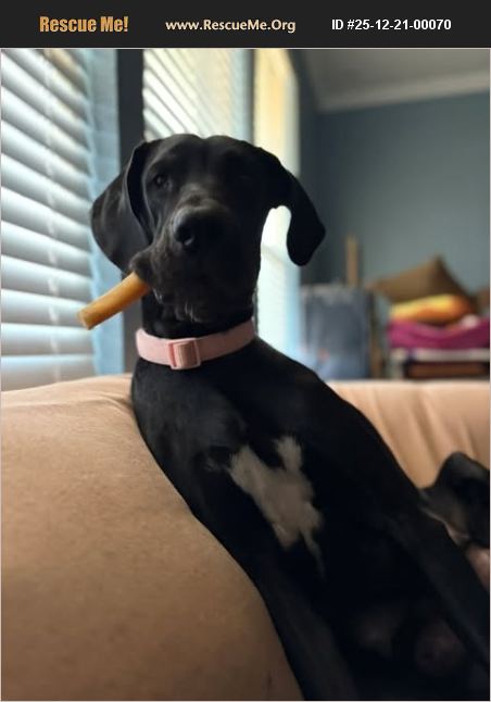 LOCATION: Boerne, TX DOB: 08/27/2022 Matilda is a black Great Dane who has already lived several lifetimes in just a few short months. She came into rescue about four months ago underweight, covered in ticks, heavily pregnant, and with an old injury to her left hip. She was quickly placed with a foster family, where she gave birth to six beautiful puppies and spent the next three months devoted to raising them. With her babies now off to their forever homes, Matilda is finally getting the chance to enjoy being the center of attention herself. She loves every person she meets and is especially gentle and patient with kids, happily soaking up their attention. Matilda is very people-oriented and stays close, often leaning in or quietly following from room to room. She's equally friendly with dogs of all sizes and enjoys playing chase, tug, and a good round of wrestling with her foster siblings. There's no edge to her play-she's just happy to be included. Matilda has a playful, goofy side that keeps things interesting. She enjoys 'redecorating' by picking up items she likes and relocating them, whether that's shoes, toys, or the occasional Christmas decoration. Thankfully, she usually just moves things rather than destroying them, though a stuffed toy may lose its filling from time to time. When playtime is over, she's perfectly content chewing on a bone or stretching out for a nap on the couch or bed, complete with the cutest little grunts as she settles in. She walks nicely on a leash, enjoys car rides, and does fine in a crate. Matilda does have an old injury to her left hip, likely from being hit by a car many months ago, and she is scheduled for corrective surgery to prevent future issues. Right now, it doesn't slow her down at all-she runs and plays without limping or showing signs of discomfort. Matilda is a sweet, social, easygoing dog who has given so much and is ready to receive that same care in return. She would thrive in a home that wants an affectionate, playful companion who enjoys both activity and downtime. After everything she's been through, Matilda is ready for a stable, loving home where she can simply be cherished. ========================= To apply to adopt me, please fill out the application form! https://form.jotform.com/51994996709176 . Note: SRGDRR adopts nationwide and offers transport options to help you find your perfect match! Check out our other adoptable dogs at saverockythegreatdane.org/adopt.