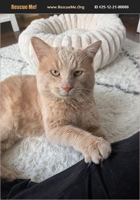 Rigatoni is looking for his forever home! He has been a stray for a few years that I have been feeding daily. This November, he decided he was ready to be pet and has become extremely friendly! I'm not sure if he was abandoned or if I'm the first person he has ever trusted, but he has come a long way. He loves to be pet and have a lap to sit on. He is litter box trained, neutered and current on his rabies vaccination. He appeared to be friendly with female cats outside, but he may be friendly with males as well now that he has been fixed. He does well with males humans but it is unknown how he does with kids.
