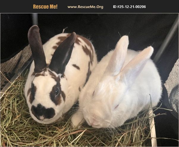 Bonded spayed/neutered male and female rabbits available. The all white male is the more dominant one of the pair but both are extremely sweet and curious little babies. They love to chew on things so they need a lot of enrichment toys and snacks to munch on. They enjoy bananas, lots of lettuce, cilantro, berries, etc. They are shy but love to be around people and can spin for treats which is so cute. Unfortunately I no longer have the time or space to care for them as we've welcomed two new babies in the family. Would love for them to be with someone who can continue to spoil them.