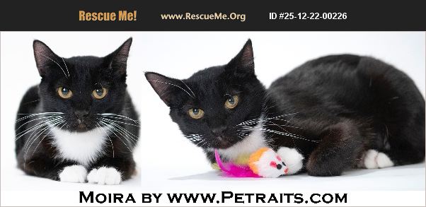 Moira is a beautiful and sweet one-year-old, 7-pound, female black and white tuxedo cat with golden eyes looking for a loving guardian. This sweet young mother was rescued with her three-month-old kittens. She can be adopted alone or with her daughter Alexis (a tortico - Tortoiseshell/Calico-mix), son Johnny (white with grey), Stevie (calico), Jocelyn (tuxedo like mom), and Twyla, a tortie. Moira gets along just fine with other cats. She's a little shy at first, but she's lovely and let's you hold her in your arms. Moira is very well-behaved in the home and uses her litter box like a good girl. She is dewormed, spayed, up-to-date on rabies and distemper vaccines, micro-chipped and virus-tested negative. She has also been treated with monthly flea prevention. To meet and possibly adopt beautiful and sweet Moira and/or one of her kittens, please fill out an adoption application https://friendsofpetraits.com/cat-adoption-application/ After the application is complete, please contact [email protected] to schedule an appointment to meet her. Her adoption fee of $175 (or $300 with her kitten) benefits the Friends of Petraits Rescue. She is currently being fostered in Barrington, Illinois.