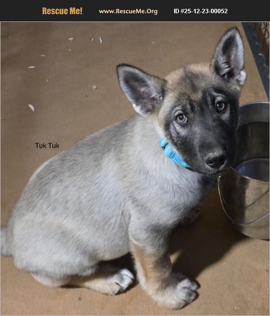 Just look at that face. Tuk Tuk was born around October 17, 2025 and is ready to be adopted. He is a typical robust and playful puppy. His mother was a GSD and we believe the father was a sable GSD. Please email [email protected] for an application. He is in Summerville, GA but transport is included in the adoption fee.