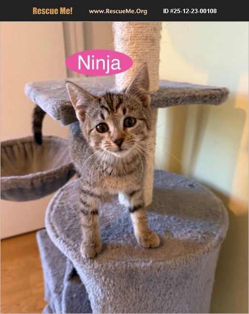 Meet this 10 week old tabby trio- Scout (adopted), Bandit, and Ninja ADOPTED Scout is a playful lover boy who will follow you around the house and be your snuggle buddy. He loves to be pet and held and will melt your heart. Bandit is an energetic boy who loves to play and wrestle with his siblings. He was named for the black around his eyes. He is a bit skittish still but generously purrs when you pet him. Ninja is a spunky rough and tumble girl who holds her own against her brothers. She has the loudest purr and you'll hear it as soon as you pet her.