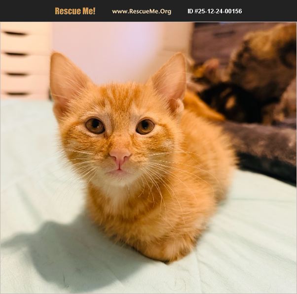 Meet Fiyero, a two-month-old orange tabby with the cutest little face and the sweetest little meow you've ever heard. He's part of our Wicked litter-alongside Glinda, Oz, Boq, and Nessarose-and is the son of their wonderful mama, Elphaba. This special litter got their start when Elphaba was found seeking refuge in a basement while trying to protect her babies. Thankfully, we rescued them just in time, and Fiyero has known nothing but safety, care, and love ever since. Fiyero is playful, social, and full of fun kitten energy. He loves to run, chase toys, and interact with everyone around him. He's great with other kitties of all ages, would likely do well with cat-friendly dogs, and is fantastic with children. His outgoing and friendly personality makes him a joy to be around. He absolutely LOVES other cats so he must be adopted with a kitten friend or to a home with another kitty. With his charming looks, affectionate nature, and lively spirit, Fiyero is ready to leap into his furever home and become a beloved member of the family. His adoption fee is $250 and Fiyero is vaccinated, FIV/FELV negative, microchipped, and will be neutered when of age in February. If you're interested in this cutie, please fill out an application at https://form.jotform.com/201805462692153. For questions, email [email protected].