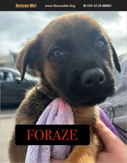 Meet Foraze!! Male Born 10/25 Shepherd-Mal mixes. Smart and eager to learn. Active, attentive homes wanted. Breed experience home. Current on puppy vaccinations, and chipped. Neuter contract will be required as part of adoption process/approval. Clermont-FL We do require an approved application and homecheck to meet any dogs in rescue. Please visit our website to apply pr send us an email inquiry.