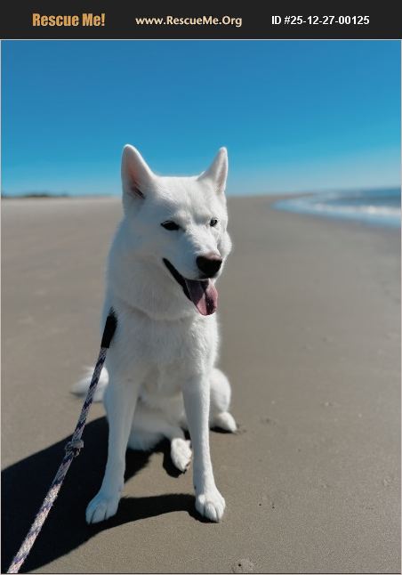 Rare all white purebred Siberian Husky with one blue and one brown eye. She loves walks on the beach, going to the dog park and cuddling at night. She loves to look at herself in the mirror and is fun to play with. She is crate trained. Needs an owner who can dedicate time to loving her and training her more.