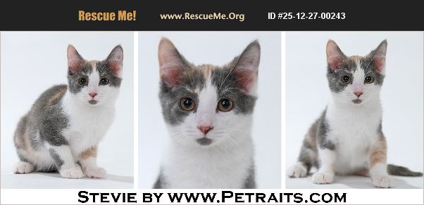 Stevie is a beautiful, shy and sweet three-month-old, 3-pound, female dilute calico kitten with golden eyes looking for a loving guardian. This sweet kitten was rescued with her Mother Moira, a one-year-old black and white Tuxedo cat, and her four, three-month-old sibling kittens. Stevie can be adopted alone (if you have a friendly feline), with her mom, or with a sibling kitten Alexis (a tortico - Tortoiseshell/Calico-mix), Johnny (white with grey), Jocelyn (a black and white tuxedo), or Twyla, (a tortie). Stevie loves other cats. She's a little shy at first, but she's fun, playful and lets you hold her in your arms. Stevie is very well-behaved in the home and uses her litter box like a good girl. She is dewormed, up-to-date on her first distemper vaccine, and has also been treated with monthly flea prevention. She will be spayed and microchipped in January. To meet and possibly adopt beautiful and sweet Stevie and/or any of her family members, please fill out an adoption application https://friendsofpetraits.com/cat-adoption-application/ After the application is complete, please contact [email protected] to schedule an appointment to meet her. Her adoption fee of $175 (or $300 as a pair) benefits the Friends of Petraits Rescue. She is currently being fostered in Barrington, Illinois.