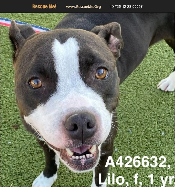 Shelter is full. Transport help may be available. * 1 year old Pit Bull Terrier * weighs 50 pounds * not yet spayed but she will be * heartworm test not completed yet * friendly - greets you at her door with a friendly bark and tail wags * easy to leash and walk * social - loves people, quick to make friends * calm and quiet in and out of kennel * explored a little but mostly wanted to be right near me getting love * loving, happy, friendly, social, playful * affectionate - she leaned right up against my legs for back scratches and pets. * very gentle treat taker and gives kisses! * side note- she has the best smile Lilo is a good girl. She loves everyone and seeks your attention. She enjoys back scratches, ears scrubs, and she's a big fan of belly rubs! This sweet little girl misses having a home and a family to share her love with. She's hoping for a new beginning with a loving family. Can you open your heart and home for sweet Lilo?