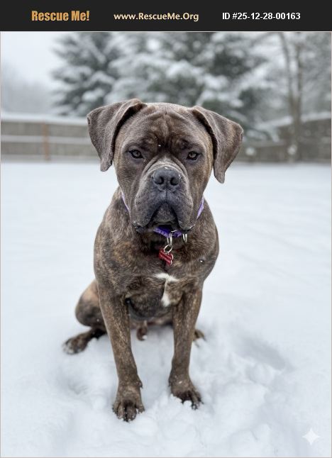 This stunning big boy is Moose! He is a 1 year old Mastiff mix weighing in at 115 pounds. Don't be intimidated by his size though, Moose is well behaved and as sweet as can be! He is very friendly and playful. He walks well on a leash and even takes treats with a gentle touch. This good natured boy knows some commands and will be a fabulous companion for anyone who likes big dogs! Moose would love a home with a big yard where he can stretch those long legs. Moose is neutered, microchipped and up to date on vaccines. All he needs now is a family to call his own. If you'd like to meet Moose, please fill out an application on our website at Rescueridge.com. If your application is a possible match, a volunteer will get back to you to schedule a meet.