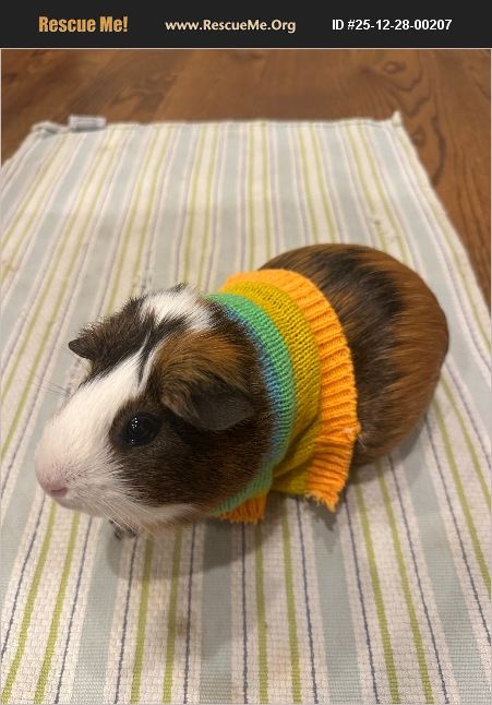 Cookie is a beautiful brown and white female guinea pig. She is approximately 4 years old. Her roommate, Oreo, is a black and white female guinea pig of the same age. I would prefer them to be adopted together as they've lived together since birth. They are very shy, but are also very sweet girls. They are great with children and have never been aggressive toward anyone.