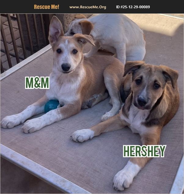 M & M is a well rounded puppy that is being fostered by the rescue owner. He has attended doggy daycare for the 6 weeks he has been in rescue and does very well with dogs of all ages and sizes. He will make a great hiking buddy or he will be happy to just hang with his new family. He loves kids and is very gentle with them. He is currently being fostered in Maricopa AZ. His estimated DOB is 9.22.2025. He would be a great family pup.